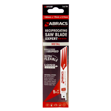 Low stock (10 units)£8.79Unit price /UnavailableReciprocating Saw Blade Fast Cut Pack of 5 150 x 19 x 0.9mm