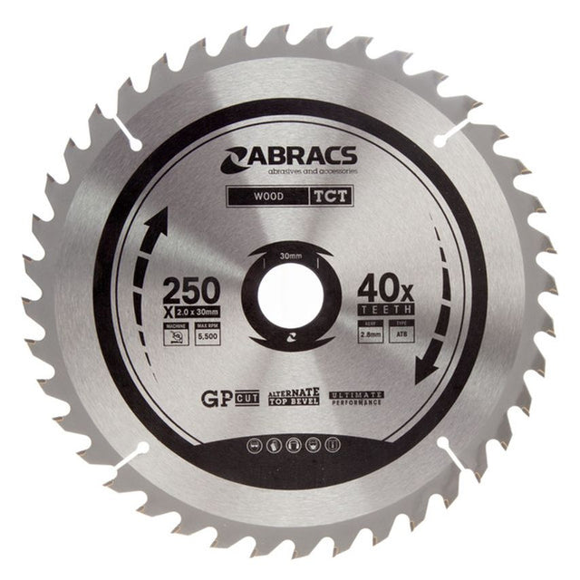 Abracs TCT25040 TCT Circular Saw Blade for Wood 250 x 30mm x 40T