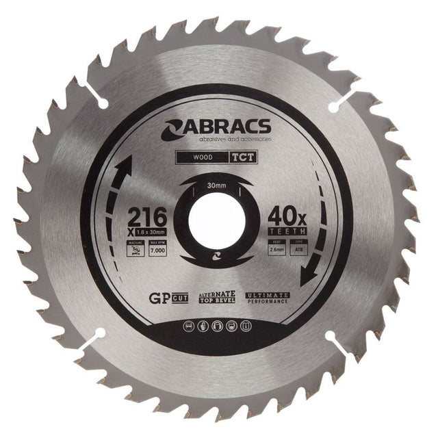 Abracs TCT21640 TCT Circular Saw Blade for Wood 216 x 30mm x 40T