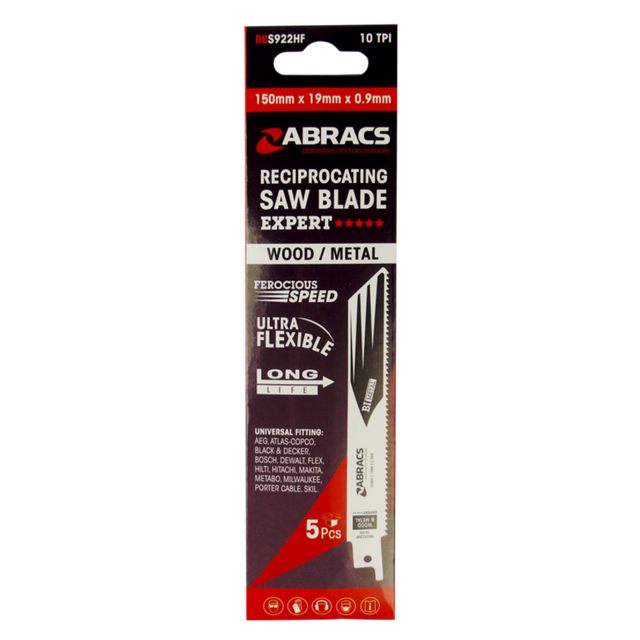 Abracs Reciprocating Saw Blade Fast Cut 150 x 19 x 0.9mm Pack 5 114946