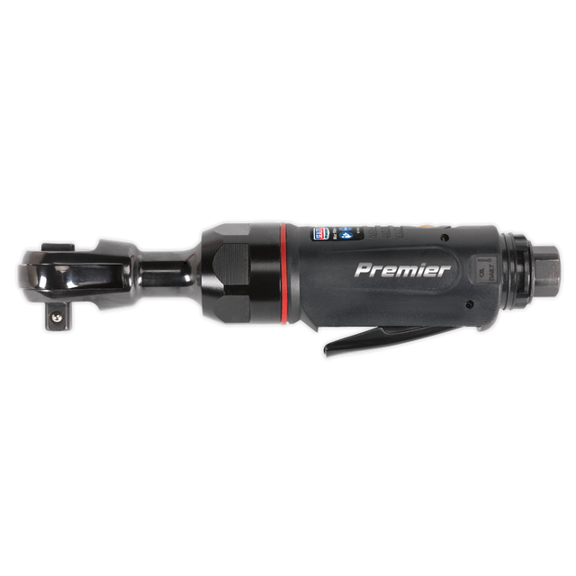 Composite cover moulded around lightweight aluminium alloy housing reduces effects of chill on operators hands and provides added control. Air motor with quality bearings for smooth and powerful operation. Exhaust outlet adjusts 360, keeping airflow away from operator. Mini design is ideal for working around engines where space is limited. Features twist reverse action and trigger operated power control. Hardened gear and yoke assembly ensures suitability for the professional workshop.