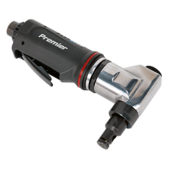 Composite cover moulded around lightweight aluminium alloy housing reduces effects of chill on operators hands and provides added control. Air motor with quality bearings for smooth and powerful operation. Exhaust outlet adjusts 360, keeping airflow away from operator. Suitable for cutting intricate shapes in steel up to 1.5mm thick. Punch and die may be rotated through 360 to aid access and obtain maximum consumable life.
