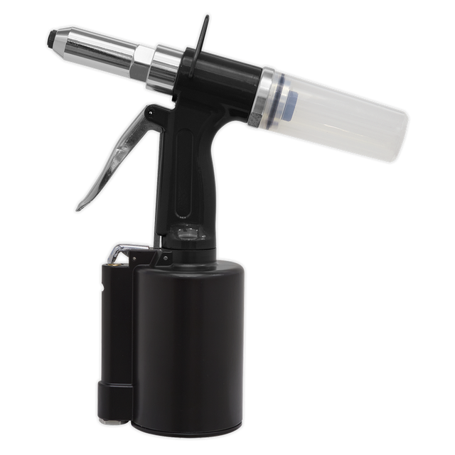Suitable for aluminium, steel and stainless steel rivets up to 3/16". Supplied with four riveting nozzles and two spanners. Trigger operated riveter with hardened steel jaw assembly and rivet shaft safety cap. Will handle heavy assembly work.