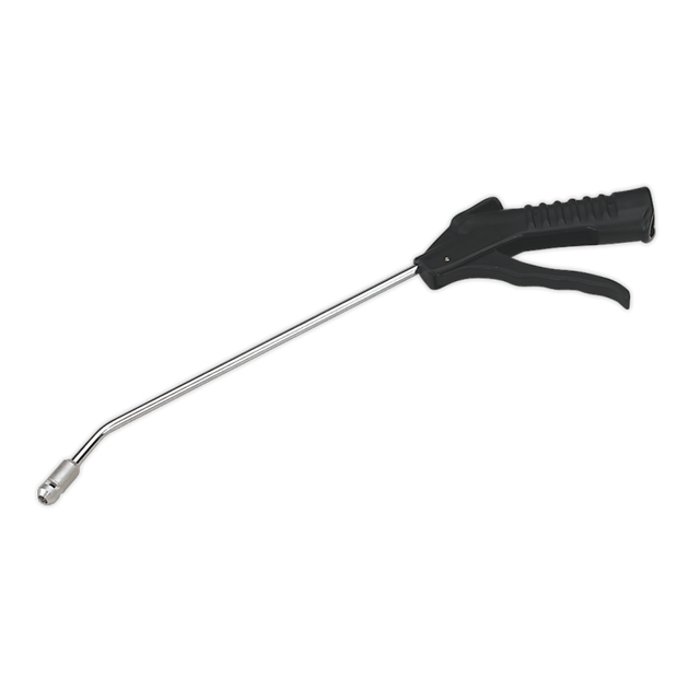 Trigger operated blow gun with extended lance. Fitted with brass air inlet ferrule. Suitable for quick removal of chips, dust and particulate from any surface. Ideal for use in the workshop or bodyshop. Long lance allows projection of airflow directly to required area. Supplied with safety nozzle. Maximum operating pressure 110psi.