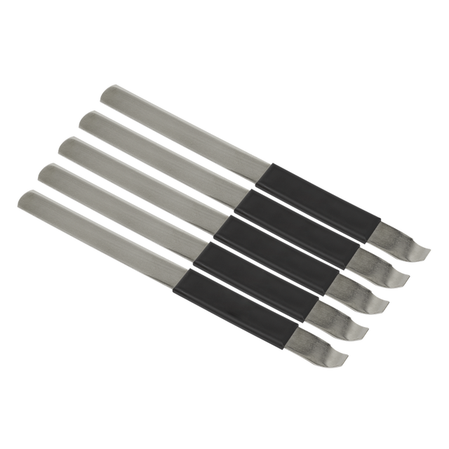 Carbon steel paint can opener with black plastic handle. Tool designed for the quick and easy opening of paint cans without damaging them. Easy-to-clean.