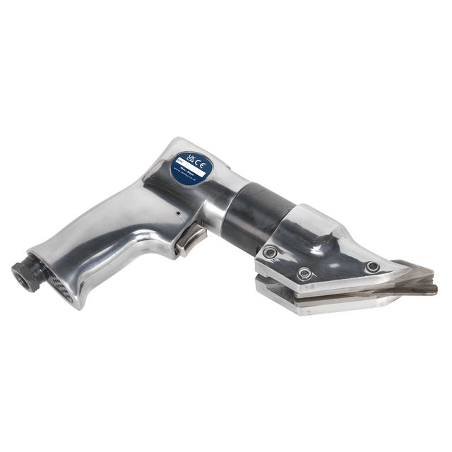 Pistol grip design for increased control and manoeuvrability. Finger tipped control and polished aluminium housing with alloy head. Suitable for cutting straight lines in steel metal sheet up to 1.2mm thickness.