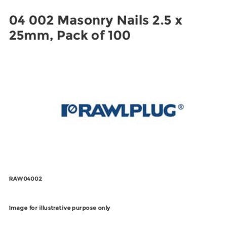 Low stock (10 units)£29.69Unit price /Unavailable04 004 Masonry Nails 2.5 x 30mm, Pack of 100 RAW04004