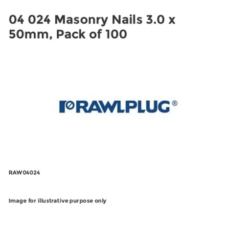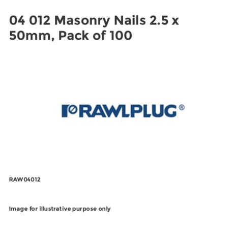 Low stock (10 units)£8.35Unit price /Unavailable04 012 Masonry Nails 2.5 x 50mm, Pack of 100 RAW04012