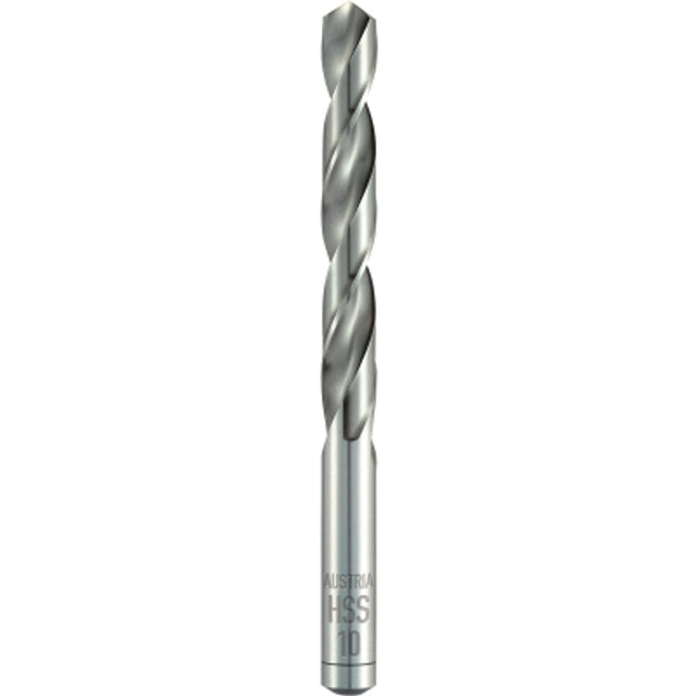 HSS twist drill ground from solid bright finish: toughness and precision combined with excellent cutting efficiency for drilling alloyed carbon and plain steel.