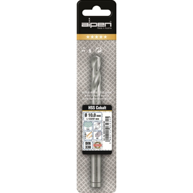 Cobalt alloyed jobber drills with a high heat resistance for drilling steel with tensile strength over 800 N/mm2. Especially suitable for high alloyed steels bearing-steels hot/cold rolled steels. Ideal for Stainless Steel