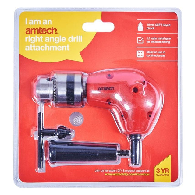 EFFICIENT DRILLING: For use with power drills, this right angle attachment has a 10mm (3/8") keyed chuck with a two-position side handle and 1:1 ratio metal gear for efficient drilling. IDEAL FOR CONFINED SPACES: With a maximum 1, 200 rpm, it is suitable for use with all standard hand and power drill chucks and is ideal for confined access and hard to reach areas.