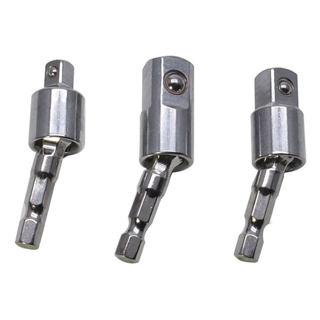 DURABLE: This 3 piece universal joint adaptor set is made from durable chrome plated and heat treated alloy steel. ALLOWS GREATER ACCESS: Its 360 swivel rotation allows excellent access even in confined spaces.