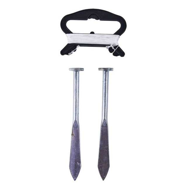 ENSURE STRAIGHT LINES: This builder's line set contains two forged steel pins with a bright plated finish and 12m (40ft) of strong nylon line in a convenient cord storage holder.