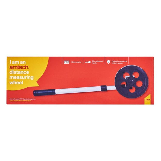 EASILY MEASURE LARGE AREAS: This 140mm (5.5") distance measuring wheel allows you to calculate the size of large areas without requiring measuring tape. VERSATILE: With a counter with a reset button for measuring distances up to 1km, it is perfect for making estimates for remodelling, landscaping, fencing and other applications. LIGHTWEIGHT AND EASY TO USE: The lightweight aluminium handle extends to approximately 860cm (34") .