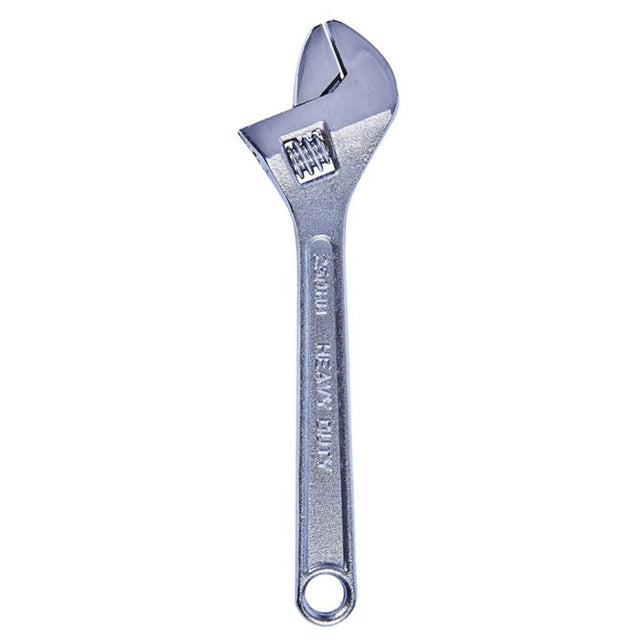 DURABLE: This adjustable wrench is made from heat treated, drop-forged carbon steel with chrome plating. SIZE: 250mm (10") with a 30mm (1") jaw opening.