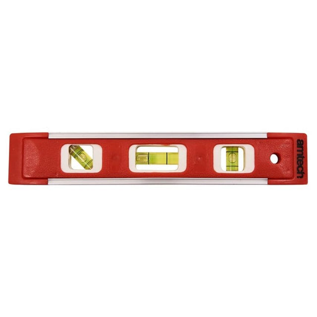 DURABLE: This 230mm (9") magnetic spirit level has a sturdy plastic body and aluminium side covers. VERSATILE: It has plumb (vertical) , level (horizontal) and mitre (45) vials and a strong magnetic bar on the side.