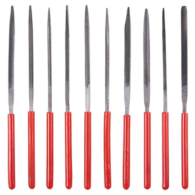 VERSATILE: With a wide assortment of blade profiles, this 10 piece needle file set has 90mm (3.5") hardened steel blades and is ideal for precision filing.