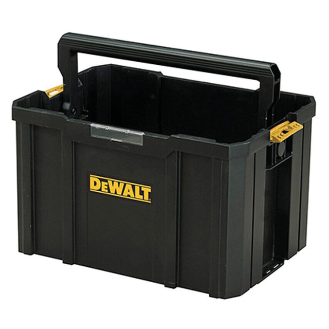 The DWST1-71228 T STAK Tote is a rugged and spacious tool organiser, designed for quick access, easy transport, and secure stacking. Featuring an open design with vertical tool storage, it keeps frequently used tools visible and within reach. The ergonomic carry handle folds away when not in use, ensuring convenience without compromising on space. Built to integrate seamlessly with the Pro-Stack system, this tote is stackable with other compatible units, making it an ideal storage solution for professionals and DIY enthusiasts alike. Features and Benefits Foldable ergonomic carry handle makes the tote easy to transport and store when not in use Vertical tool storage provides quick visibility and access to frequently used tools Large open interior is ideal for bulk storage of tools, fasteners, and accessories Stacking latches securely integrate with the pro-stack system for a customisable storage setup Durable, weather-resistant construction withstands regular use and exposure to harsh conditions Nameplate allows for easy identification and helps keep tools and accessories organised