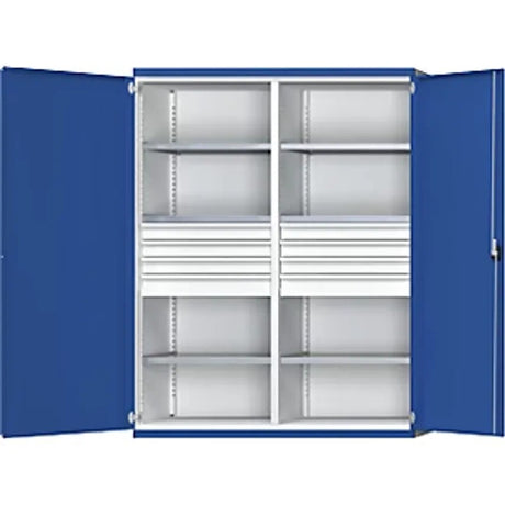 Low stock (10 units)£3,409.99Unit price /UnavailableHeavy Duty Cupboard With Centre Partition, 4 Drawers 180mm, HxWxD 1950 X 1084 X 690mm