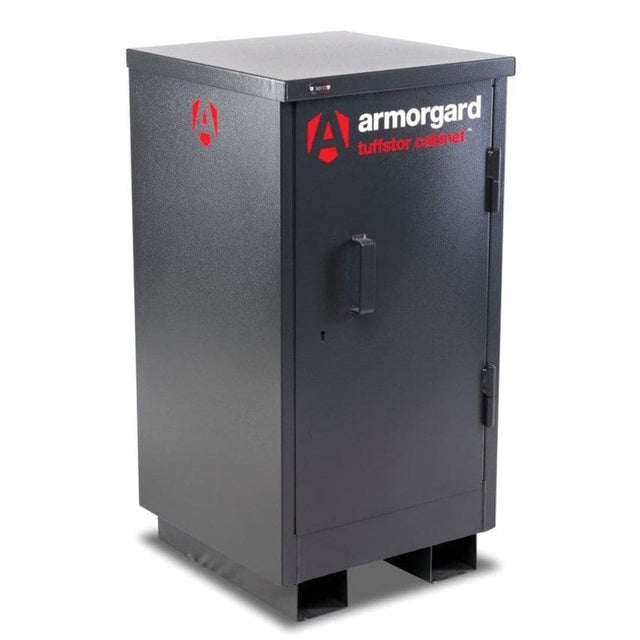 The Armorgard TuffStor Cabinets are fitted with adjustable shelving. Designed to keep tools, equipment and fixings more organised and accessible. Also ideal for inside a vehicle where they occupy less floor space. Robust construction from 2mm steel plate. The heavy-duty door is fitted with a 5-lever deadlock and serial numbered for replacement keys. Fully adjustable shelves fitted on all sizes. Finished in low-visibility charcoal grey with forklift skids on all sizes.