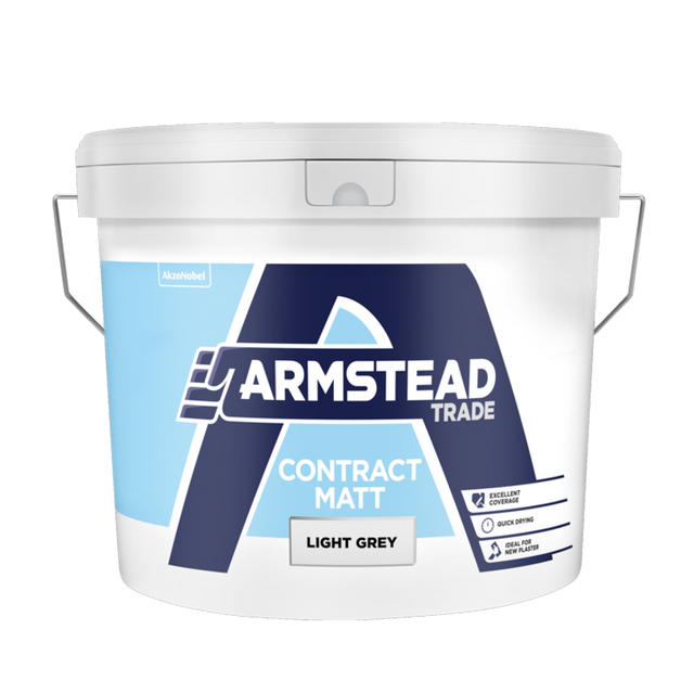 Armstead Trade Contract Matt Light Grey 10ltr Armstead Trade Contract Matt is a professional quality, quick drying matt emulsion for both old and new surface areas It has high opacity so it covers the surface below easily Suitable for all normal interior wall and ceiling surfaces especially new plaster Its water based Coverage 15m square per litre Applied by brush, roller or spray Drying time 1-2 hours Recoatable time 2-4 hours Number of coats needed 1 or 2 Cleaning - Remove as much paint as possible from the brush or roller before cleaning with water