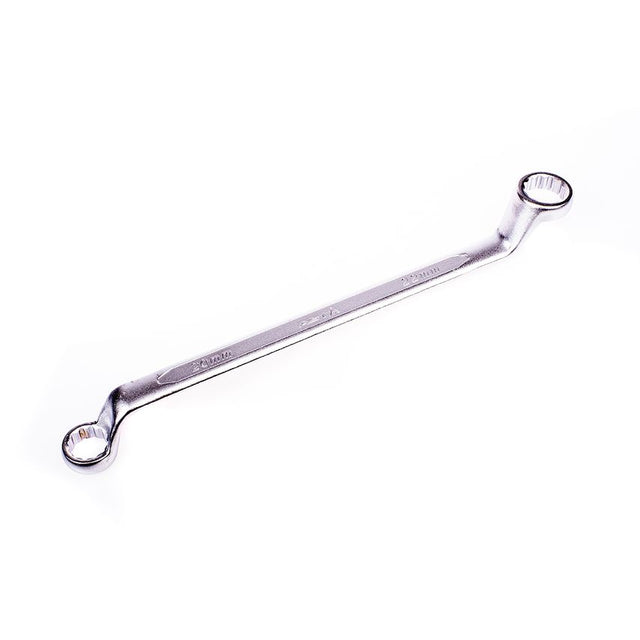 20x22mm double end 12 point (12PT) ring spanner offset at 75 for easier use on flat surfaces and hard to reach areas. Made of hardened and tempered Chrome Vanadium (Cr-V) steel for maximum performance and durability. Matt finish for resistance to corrosion.