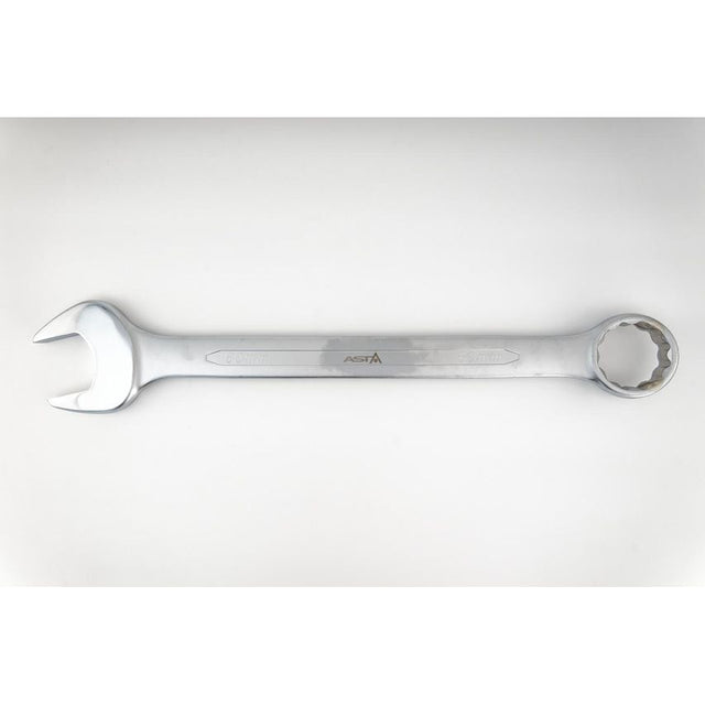60mm combination spanner with straight open and 15 offset 12 point (12PT) ring end for easier use on flat surfaces. Made of hardened and tempered Chrome Vanadium (Cr-V) steel for maximum performance and durability. Matt finish for resistance to corrosion.