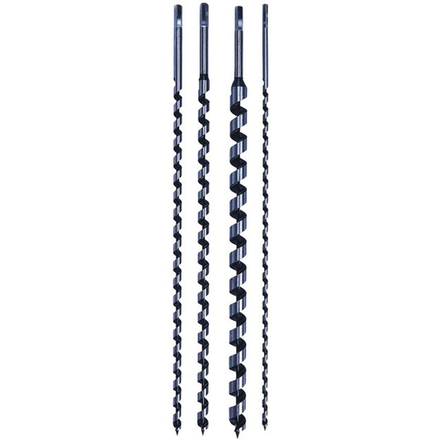 DURABLE: These auger drill bits are manufactured from tough, high carbon steel for added durability. 4 SIZES: Approximately 600mm in length, these auger bits come in sizes: 8mm, 12mm, 16mm and 24mm.