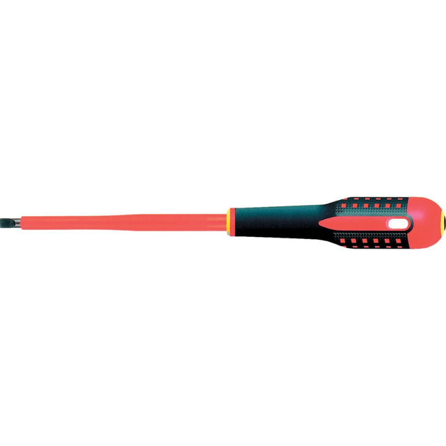 Insulated screwdrivers with three-component ergonomically designed handles combining a strong core with excellent grip. The soft, high-friction material allows optimum torque and maximum comfort even when used in wet or oily conditions. Smoothly rounded shape eliminates pressure points on the hand in use. All handles are colour-coded at both ends to aid type identification, and are fitted with hanging holes for convenient storage.