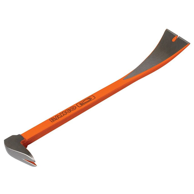 This Bahco Pry Bar features both a crowfoot and wide end, both of which are useful for demolition work. Its short length makes it ideal for use in tight spaces. The bright orange finish is easy to spot on site.
