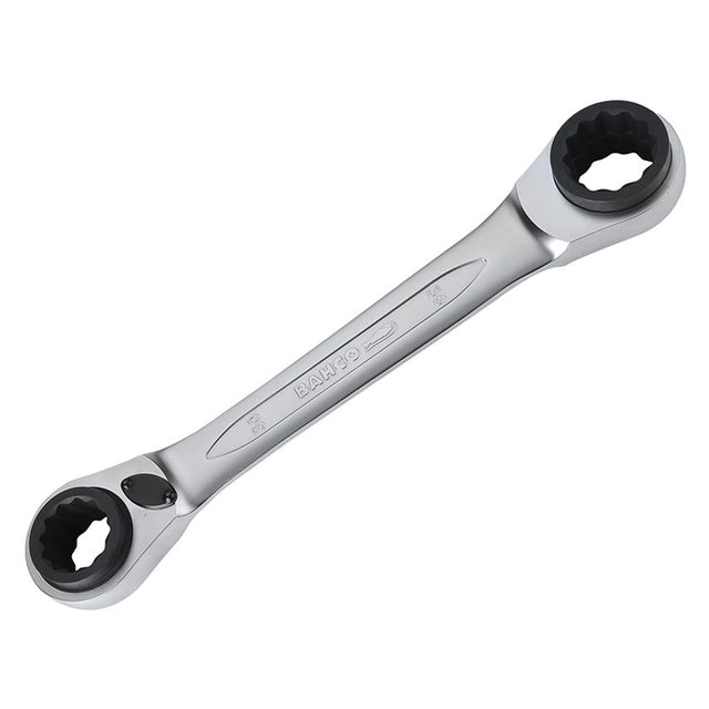 The Bahco S4RM ratcheting spanners are made from top-quality forged steel, nickel and chrome plated in a matt finish for a smooth and secure grip. Easy to use, these spanners simply grip the nut or bolt being removed or tightened, the ratcheting spanner heads are sized either side of each spanner for the desired size of nut or bolt, just push the direction lever to remove or tighten the nut or bolt with a ratchet action. They are an ideal option for motor mechanics, as these spanners cover 2 sizes at each end and can be used in awkward places and minimal movement is required to use them.