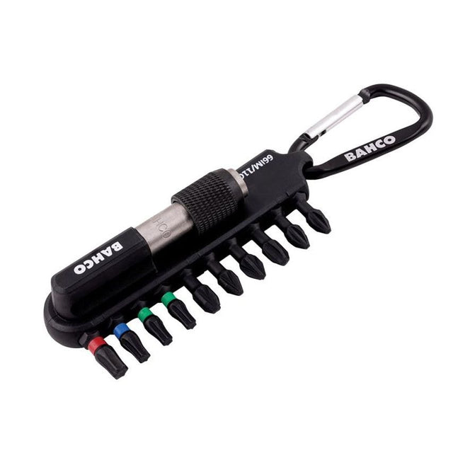 The Bahco 66IM/11C-1 Heavy-Duty Torsion Bit Set contains a selection of impact bits that are suitable for impact drivers. These bits have been designed for long-term use, the torsion zone can effectively spread the strength concentration. It absorbs torque peaks avoiding premature wear and tear and improving service life. All the bits are made from high-performance alloy steel with a manganese phosphate finish. Conforms to DIN 3126, ISO 1173, style E 6.3. Supplied on a soft plastic holder with a safety lock belt clip. Contains 3 x 25mm Phillips Bits PH2(x2) and PH3 3 x 25mm Pozidriv Bits PZ2(x2) and PZ3 4 x 25mm TORX Bits TX20(x2), TX25 and TX30 1 x Magnetic Quick-Release Bit Holder