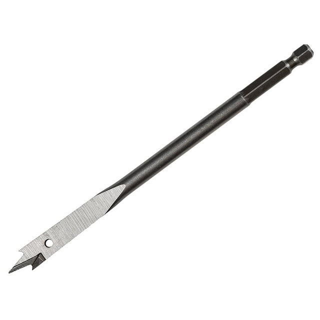 Bahco 9629 Series Flat Bit have a positive cutting angle which drills holes twice as fast and lasts 3x longer than a conventional bit. Made from high-carbon steel and heat-treated all over. The hardened blade is forged directly from the round shaft. Its winged shoulders enable the bit to first cut the wood and then remove the material from the centre section, ensuring a smooth finish and superior swarf clearance. Sizes 10mm and above feature cutting spurs.
