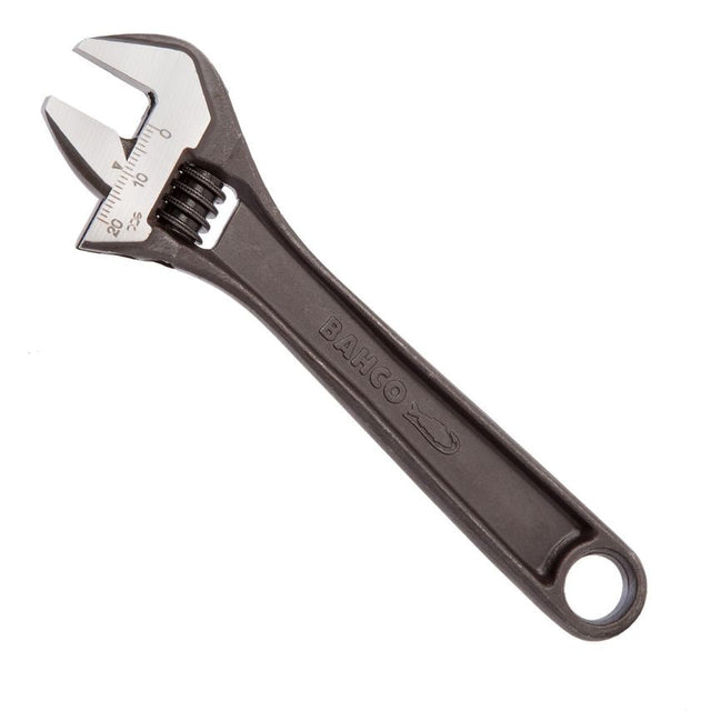 Bahco 8070 Adjustable Spanner 6 Inch / 153mm - 20mm Jaw Capacity Bahco adjustable wrench with phosphate finish. Invented by Bahco in 1892, their quality is second to none. Exceeding ISO specifications the wrench withstands high torque loads and the specifically heat treated Swedish ' V' steel jaws give a long life. Precision hardened and anti-corrosion treated Features: Tapered jaws and 15-degree head angle with no protruding shank when fully open Strong 'I' section handle and spring-loaded square section Knurled adjusting nut Ergo designed handle which ensures comfortable grip Fixed jaw which has a measurement scale to indicate approx. size of nuts, bars, screws, etc Specification: Overall length: 153mm / 6in Jaw Capacity: 20mm Weight: 155g
