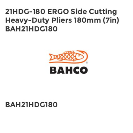 Low stock (10 units)£54.99Unit price /Unavailable21HDG-180 ERGO Side Cutting Heavy-Duty Pliers 180mm (7in) BAH21HDG180