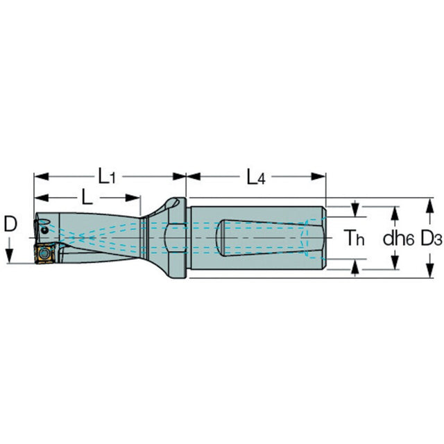 Indexable square insert drills with coolant holes. Available in drilling depths: 2xD, 3xD, 4xD and 5xD.
