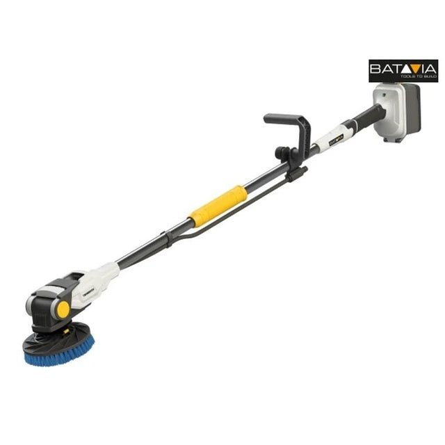 The Batavia MAXXPACK Brushless Twin Brush is a powerful scrubber, perfect for cleaning terraces, pavements, houses, campers, boats, and more. What makes the Twin Brush special, are the patented counter rotating brushes. This gives you more control over the scrubber, and you can clean surfaces faster, easier, and better. This patented feature also gives you the opportunity to choose between a fixed or a moveable brush head, with an angle of -15 and 90. This, combined with a second handle and a strong and long aluminum steel, creates a better and more comfortable working position and enables intensive usage. A secured auto-water feed allows you to add a hose to thge brush, this sprays water within the brush and creates the best possible cleaning results. The Twin Brush has a IPX7 rating, thanks to the waterproof design and the battery cover. Supplied with the medium (blue) brush head. If you need a soft (black) brush for delicate work or a hard (red) brush for the most persistent dirt, you can buy these seperately. There is also an additional extension pole available, to reach high areas.