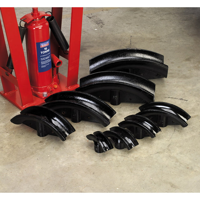 Floor standing pipe bender with fabricated steel chassis and heavy-duty 16 Tonne hydraulics with integral pump and reservoir. Fitted with externally mounted return springs. Suitable for bending gas and air pipe from 13mm up to 51mm(2"). Bends up to 180 (3 x 60 bends). Die Sizes: 13mm(1/2"), 20mm(3/4"), 25mm(1"), 32mm(1-1/4"), 40mm(1-1/2"), 51mm(2"), 63mm(2-1/2"), 75mm(3").