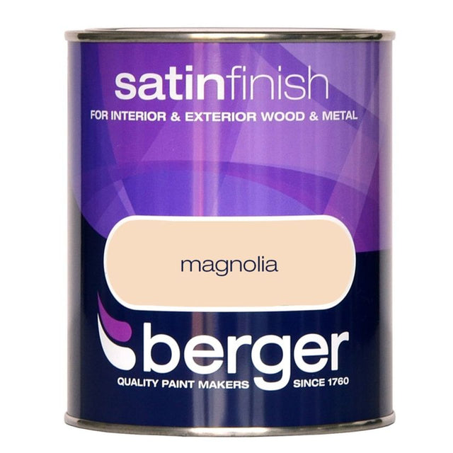Berger Satin Sheen 750ml Magnolia Berger Satin provides a rich soft sheen finish and is suitable for use on interior wood & metal