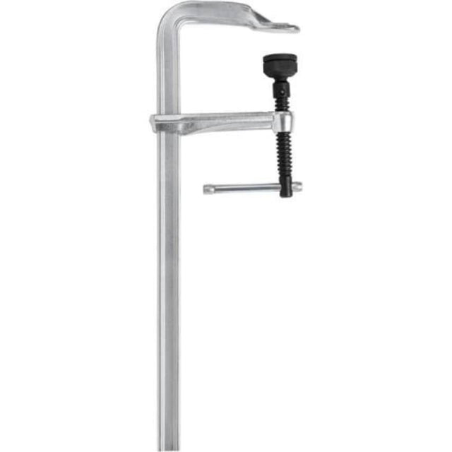 Clamping force up to 8,500 N at tightening torque of 25 Nm 20 % more clamping force per spindle rotation with optimised rail profile Maximum safety due to the better linear transfer of force of the sliding arm Long life due to heat-resistant pressure plate with sintered steel insert, which can be tilted up to 35 High stability, The optimised profile guarantees high clamping force build-up in the shortest time, while maintaining maximum stability and safety. The fixed bracket and pressure plate are manufactured in a single piece, and tempered, so are able to bear heavy loads and are resistant to torsion. Forged sliding arm, The sliding arm has a shape that allows for more efficient transfer of force. As a result of its more linear transfer of force, the U-shaped sliding arm offers maximum security with the heaviest of loads. You can rely on that. Special tilting pressure plate, The heat-resistant pressure plate is replaceable and can be tilted up to 35 so it can even clamp on angled or sloping surfaces. It has an extremely long service-life due to the oil-soaked sintered steel insert's excellent sliding and emergency running properties. Tempered spindle, The tempered spindle is particularly sturdy and wear-resistant. This considerably increases its durability.