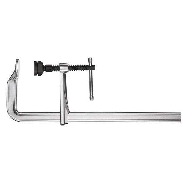 Increasingly high clamping pressures, with larger throat depths and wider openings. These are the demands that original BESSEY high-performance clamps need to fulfil on a daily basis. Used in steel and boiler construction, shipbuilding and automotive engineering. Also in heavy timber construction, laminated wood beam construction and carpentry. In other words, wherever sturdy or heavy parts need to be clamped very securely, with a very high clamping pressure. Developed on the basis of the tried-and-tested BESSEY all-steel screw clamp, the original BESSEY high-performance clamps fulfil all requirements with panache... again and again! The high-performance clamp. Your benefits at a glance: Extremely sturdy.Fixed bracket and pressure plate are produced and tempered from a single piece, thus very torsion-resistant. This guarantees you maximum tensile strength and sturdiness. Special tilting pressure plate.The heat-resistant pressure plate is replaceable and can be tilted up to 35 so it can even clamp on angled or sloping surfaces. Tempered spindle. The tempered spindle is particularly sturdy and wear-resistant. This considerably increases its durability. Sturdy tommy bar.The sturdy tommy bar has special rounded hand-friendly ends, as well as a hexagonal bolt. This allows powerful, controlled clamping.