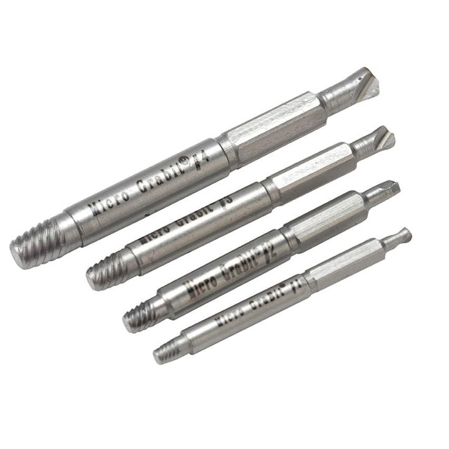 The Boa Micro Grabit extractor is a precision instrument, designed for the electronics and precision engineering industries. It removes delicate screws and bolts in more restricted areas and the set combination will allow fast and efficient removal of all small size diameter screws and bolts. Great for fixing cameras, glasses, tech. equipment etc. Works with all standard variable drills. Fits Micro R #5+6 Screw sizes 0-2 / Bolt size 5+6 Micro R #8 Screw sizes 2-4 / Bolt size 8 Micro R #10 Screw sizes 4-7 / Bolt size 10 Micro R #12 Screw sizes 7-10 / Bolt size 12