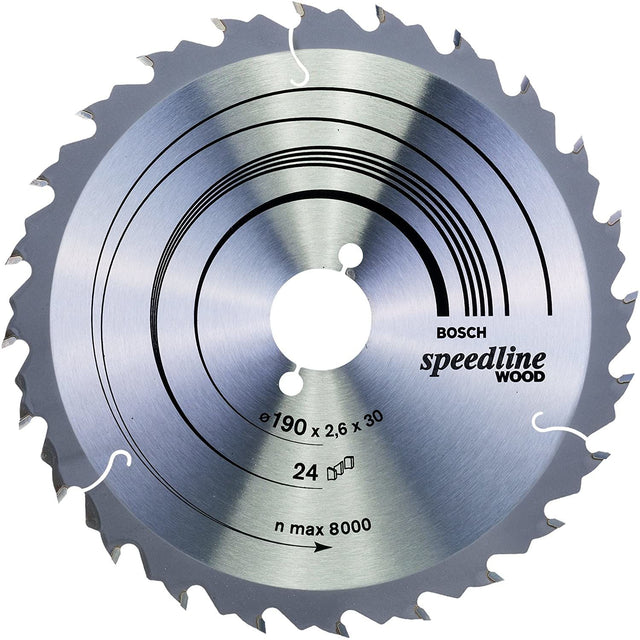 The Speedline Wood Circular Saw Blade delivers fast rip and crosscuts in all types of wood. Its high-quality precision-ground carbide teeth make the blade robust enough for rapid cutting while its base blade made of dimensionally stable SK5 hardened steel (> 40 HRC) ensures accuracy. Furthermore, the blades expansion slots lower vibration during use, which dampens noise and reduces heat development. Use this saw blade in all types of wood and wooden materials. It is compatible with hand-held and table saws.