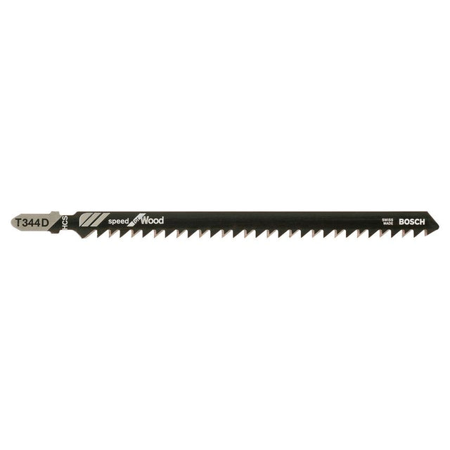 Bosch jigsaw blades for wood designed to make fast, straight cuts in materials up to 100mm in thickness The Bosch T344D (2608633A34) 5 Pack of Jigsaw Blades makes straight cuts in wood with sharp-ground, side-set teeth producing fast cuts. The high carbon steel blade material is appropriate for softwood and non-abrasive woodworking materials. Additionally, its large tooth pitch (4 mm) and long length (152 mm) cut wooden materials of up to 100 mm thickness. For use with jigsaws with T-Shank clamping systems. Features: T 344 D Speed for Wood Jigsaw Blade makes fast straight cuts in wood Sharp-ground, side-set teeth produce fast cuts High carbon steel material is appropriate for cutting softwood and non-abrasive woodworking materials Large tooth pitch (4 mm) and long length (152 mm) cut wooden materials of up to 100 mm thickness Specification: Part Number: 2 608 633 A34 Pack Size: 5 Total Length: 152mm Tooth Spacing: 4.0mm
