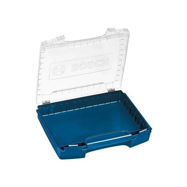 The Bosch i-BOXX 72 has a transparent lid for a clear view of the items inside. Compatible with i-BOXX rack, LS-BOXX and i-BOXX inset box sets. There is also a lock-in function for the i-BOXX rack and LS-BOXX for secure transportation. Specifications: Outer Dimensions (WxLxH) : 357 x 316 x 72mm. Weight: 0.9kg.