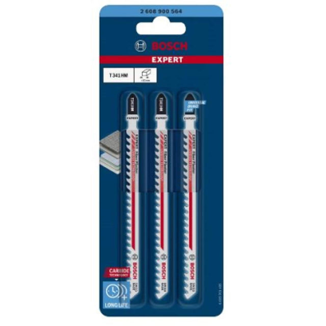 Long Life Cutting Abrasive Construction Materials Exceptional durability is built in with Bosch Carbide Technology. Large, constant tooth pitch to handle thick, tough materials. Fits all T-shank jigsaws 1 Exceptional durability is built in with Bosch Carbide Technology. 2 Large, constant tooth pitch to handle thick, tough materials. 3 Side set teeth to cut thicker materials effectively.