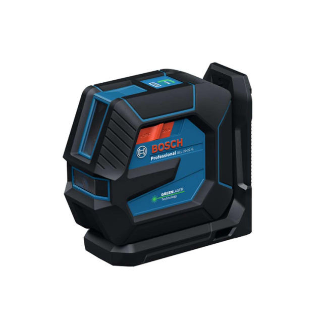 The Bosch GLL 20-22 G Professional Line Laseris a robust and intuitive line laser made for a wide variety of applications. With an IP65 rating and rubber-enforced housing, it is made to withstand dust and water, so you can work with confidence in even the toughest conditions. The U-shaped laser window provides a broader fan angle for the horizontal line.Its dual power source, y BA 3.7V 3.0Ah XL Li-Ion battery and AA alkaline batteries, helps to eliminate downtime and increase productivity.The tool features a large battery indicator for easy readout. Its bright green laser lines provide up to four times better visibility than red lines to make your levelling easier no matter where the job takes you.Supplied with: 4 x AA 1.5V LR6 Batteries, 1 x LB 10 Professional Universal Mount, 1 x Alkaline Battery Adaptor, 1 x Laser Target Plate and 1 x Pouch.Specifications:Accuracy: 0.3 mm/m.Self-levelling Range: 4Working Range: 20mWorking Range of Laser Points: 10m (top) , 10m (bottom) Levelling Time: 4 SecondsPower Supply: 3.7 V Li-Ion battery (3000 mAh) or 4 x 1.5 V LR6 (AA) (Supplied) Operating Temperature: -10-50CStorage Temperature: -20-70CDust and Splash Protection: IP65Tripod Thread: 1/4inWeight:0.56kg