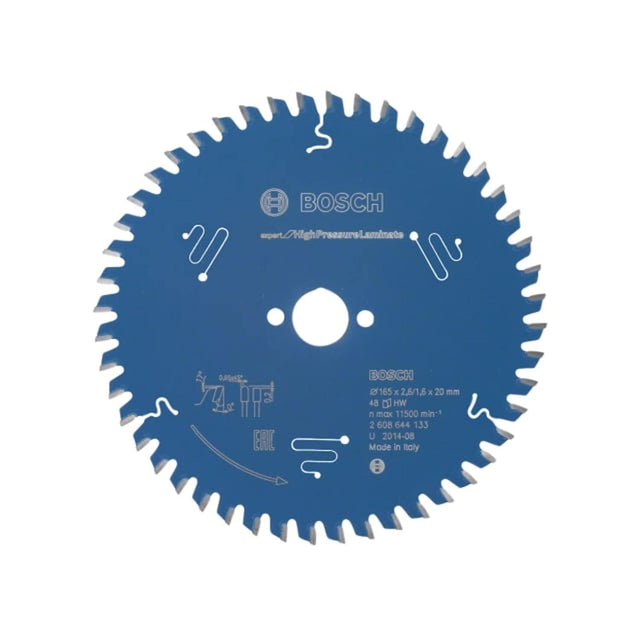 Bosch Expert for High-Pressure Laminate Circular Saw Blade. The Extra Hard MicroteQ teeth are manufactured in-house by Bosch and consist of durable carbide grains for high performance. HLTCG (High-Low Triple Chip Ground) teeth make the blade robust for working with abrasive materials. Anti-vibration slots provide particularly smooth cutting, considerably less noise and significantly reduced vibration.Compatible with plunge and hand-held saws.