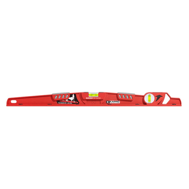 The Kapro 920 Shark Level maintains its accuracy, even in the toughest working conditions. Its heavy-duty cast trapezoid profile is fitted with two shock absorbing rubber 'anvils' for taking hard and repeated trowel blows when laying tiles. The finely milled face increases the precision of your work by keeping the level's profile directly against the levelling surface. It has two solid acrylic vials, one horizontal and one vertical with the patented plumb side dual view vial. The plumb side vial supplies a direct view of the vertical vial, without having to twist or bend your neck to view, for easy and accurate readings every time. Specification: Accuracy: 0.5 mm/m.