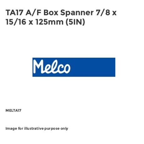 Low stock (10 units)£70.39Unit price /UnavailableTA8 A/F Box Spanner 9/16 x 5/8 x 125mm (5IN) MELTA8